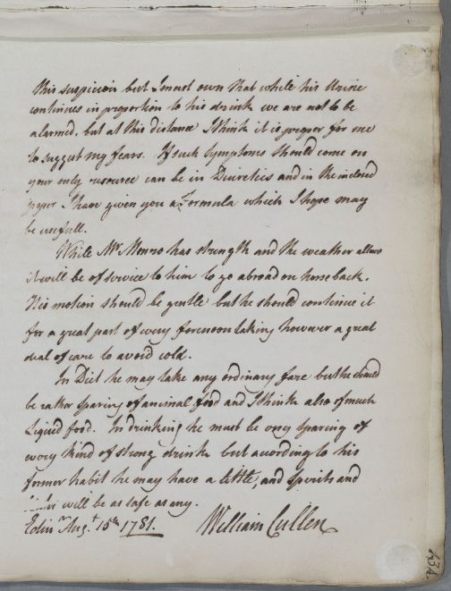 [ID:181] From: Dr William Cullen (Professor Cullen) / To: Mr John McFarquhar (Farquharson) / Regarding: Mr Hugh Munro (Monro, of Achanie, of Achannie) (Patient) / 15 August 1781 / (Outgoing)