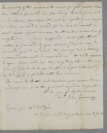 | Summary | Letter from Dr John Govan concerning the case of Mr Dalgleish of Scotscraig. Hand delivered by a Mr Hunter, who will deliver the reply. |