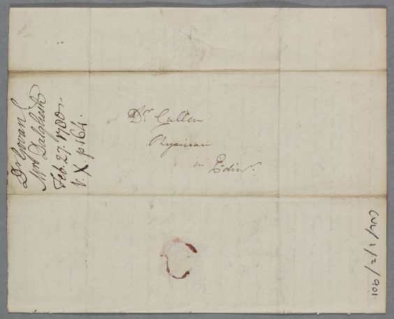 [ID:1821] From: Dr John Govan (Gowan) / To: Dr William Cullen (Professor Cullen) / Regarding: Mr James Dalgliesh (of Scotscraig) (Patient) / 27 February 1780 / (Incoming)