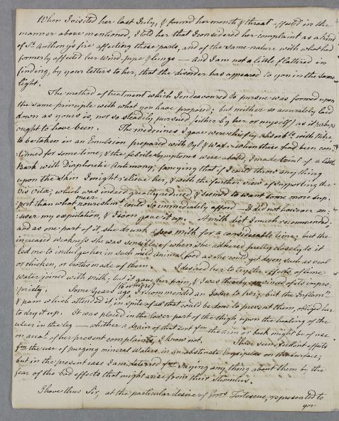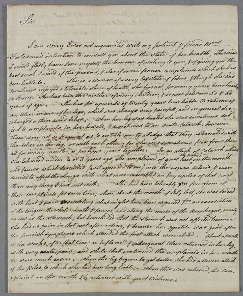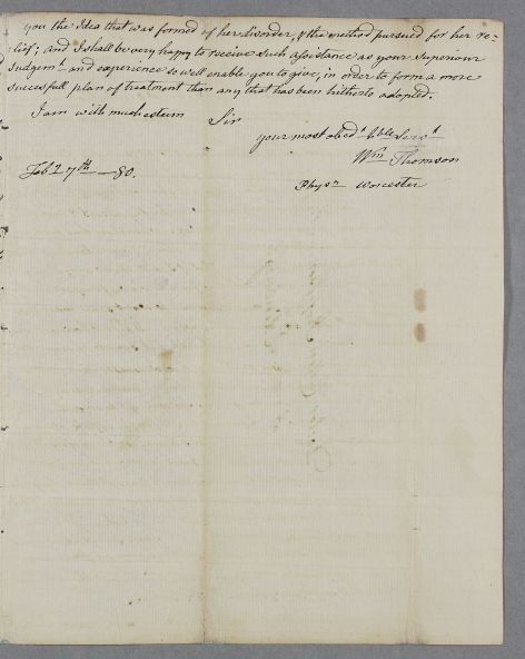 | Summary | Letter from Dr William Thomson at Worcester, concerning the case of Mrs Fortescue. |