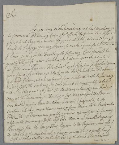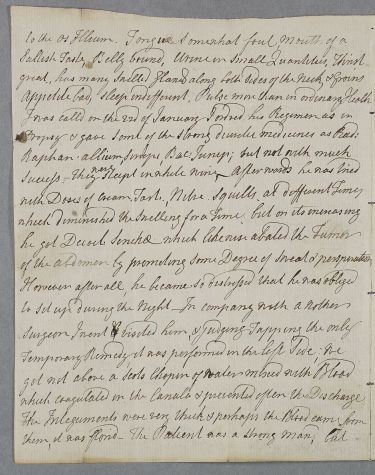 | Summary | Letter from James Whytt concerning the case of Andrew Flockhart, 'a husband man' who has developed dropsy after being injured by a carriage wheel. Cullen's advice is noted in brief summary form. |