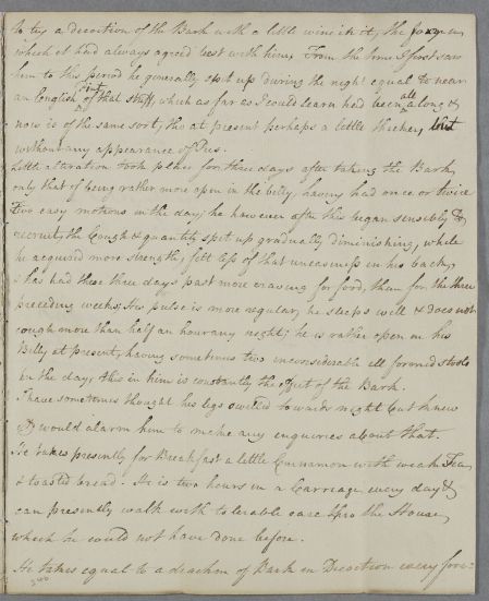 to try a decoction of the Bark with a little wine in it, the {illeg}