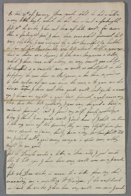 Feb: 11th he writes, I have not been of late well, for more