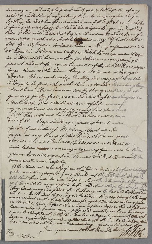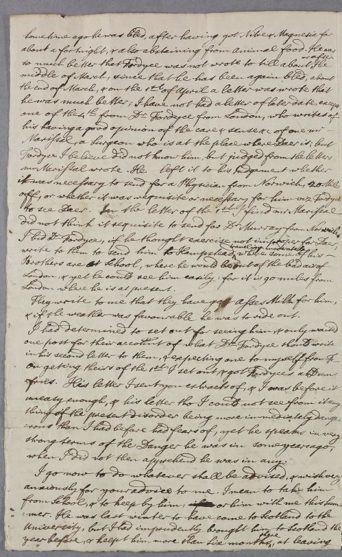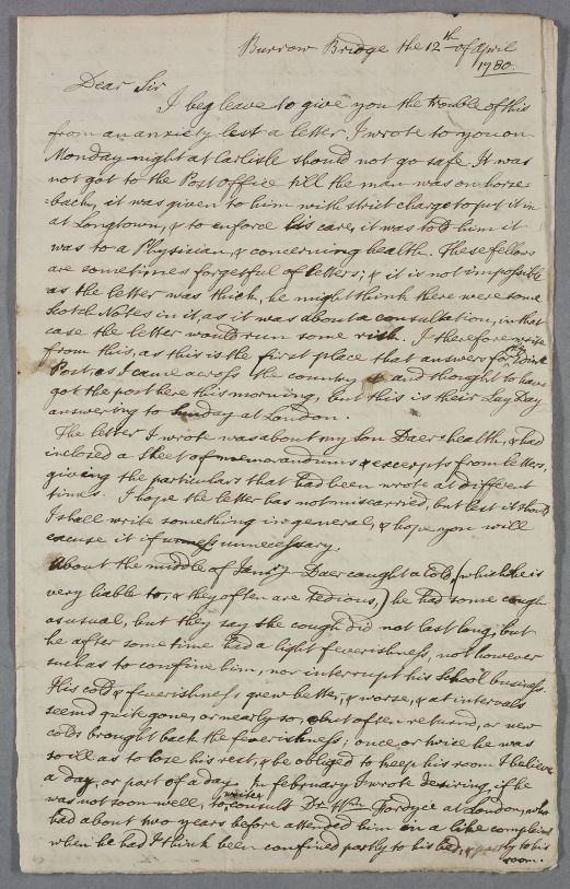 | Summary | Letter from the Earl of Selkirk, concerning the case of his son, Lord Daer who is attending the Barbauld's school at Palgrave. He repeats much of his last letter fearing it may have been stolen in the post. |