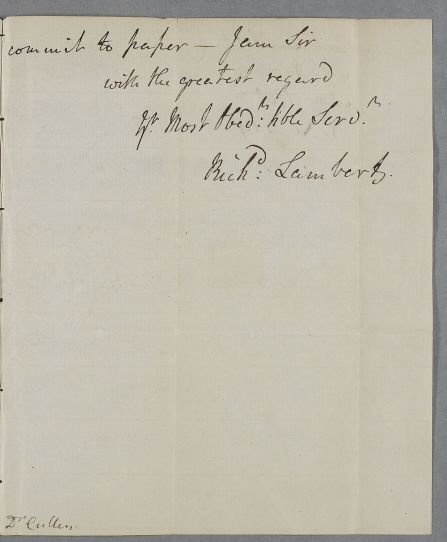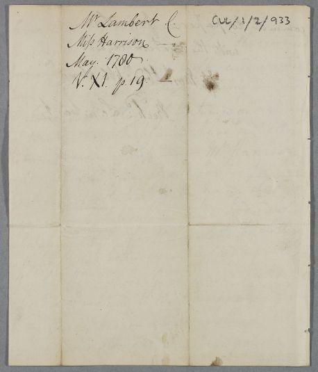 [ID:1854] From: Mr Richard Lambert / To: Dr William Cullen (Professor Cullen) / Regarding: Miss Harrison (Patient) / 20 May 1780 / (Incoming)
