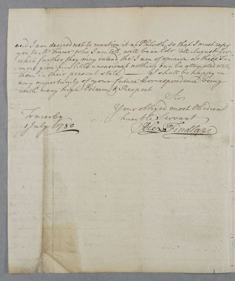 [ID:1877] From: Dr Alexander Findlay / To: Dr William Cullen (Professor Cullen) / Regarding: Lord George Fraser (15th Lord Saltoun of Abernethy) (Patient) / 1 July 1780 / (Incoming)