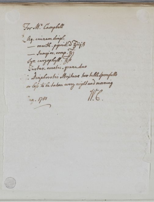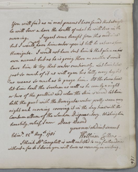 [ID:188] From: Dr William Cullen (Professor Cullen) / To: Dr David Colquhoun / Regarding: Mr Campbell (Patient) / 25 August 1781 / (Outgoing)