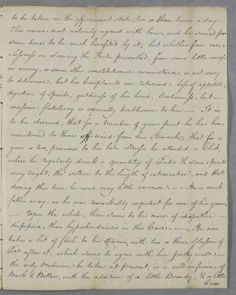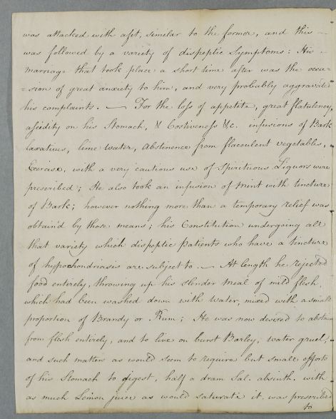 ascidity on his Stomach, & Costiveness &c. infusions of Bark