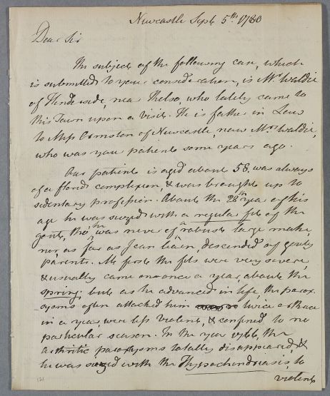 [ID:1911] From: Dr John Clark (Clerke, Clarke) / To: Dr William Cullen (Professor Cullen) / Regarding: Mr George Waldie (of Hinderside [Hendersyde]) (Patient) / 5 September 1780 / (Incoming)
