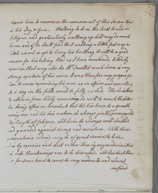 | Summary | Reply, concerning the case of Captain Smollet. The case concerns Captain Smollet's chest complaint, which Cullen says should not be neglected. The letter also mentions a Dr Grieve's opinion on the case. |