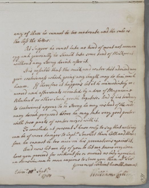 [ID:194] From: Dr William Cullen (Professor Cullen) / To: Anonymous / Regarding: Captain Smollet (Patient) / 10 September 1781 / (Outgoing)