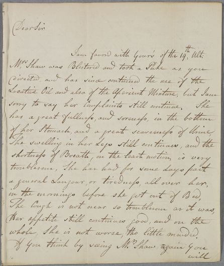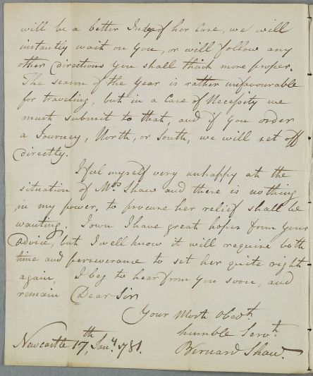 [ID:1967] From: Bernard Schaw (Shaw) / To: Dr William Cullen (Professor Cullen) / Regarding: Mrs Schaw (Shaw) (Patient) / 17 January 1781 / (Incoming)