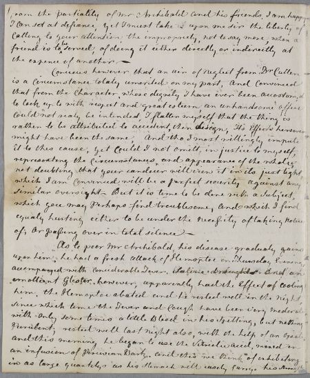 | Summary | Letter from Andrew Wilson, concerning a sense of personal insult over Cullen's handling of the joint consultations regarding the serious case of Mr Archibald. |