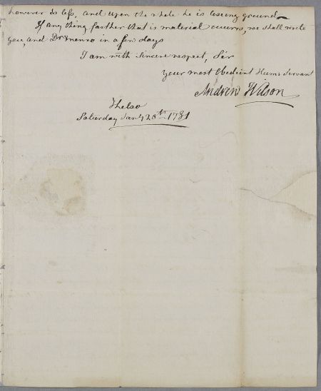 [ID:1969] From: Dr Andrew Wilson / To: Dr William Cullen (Professor Cullen) / Regarding: [A matter not directly regarding a patient] / 20 January 1781 / (Incoming)