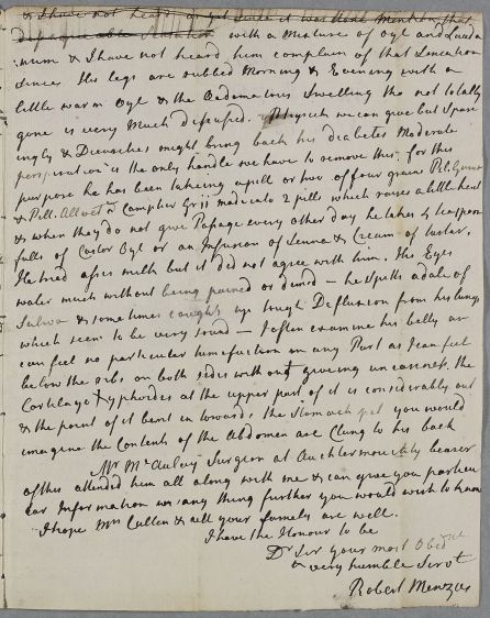 [ID:1985] From: Dr Robert Menzies (of Dura ) / To: Dr William Cullen (Professor Cullen) / Regarding: Mr Bruce (of Kinloch) (Patient) / 8 March 1781 / (Incoming)