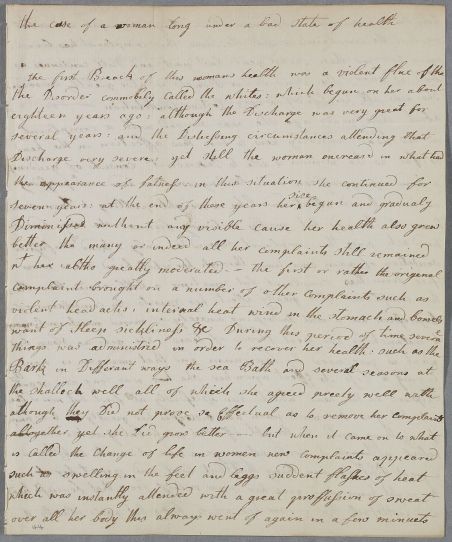 | Summary | Letter, in the form of a case note entitled ' the case of a woman on under a bad state of health' form an unnamed practitioner(?) concerning the case of Mrs Kennedy's friend. Unsigned but Cullen replies as if this was 'communicated by Mrs Kennedy'. Dated in annotation. |