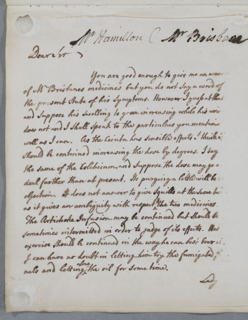 | Summary | Reply, 'Mr Hamilton C[oncerning] Mr Brisbane', and also mentioning the cases of Lady Stuart and of Hamilton's father, Professor Thomas Hamilton. |