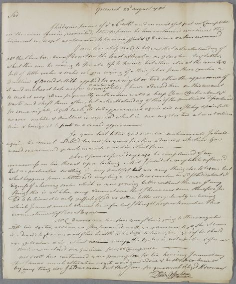 | Summary | Letter from David Colquhoun, concerning the case of Mr Campbell, with a brief note on the case of Mr Scot. Mr Campbell's cracked and weeping skin upon the genital region continues, despite applying prescribed remedies. Mr Scot has continued Cullen's prescription for his hearing, but Colquhoun is as yet unaware of any alteration in the condition. |