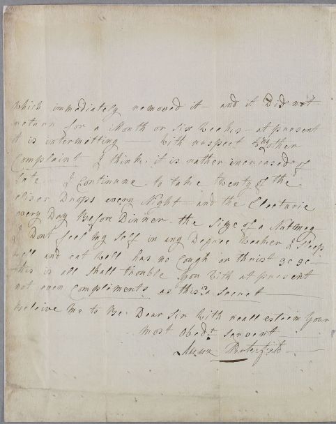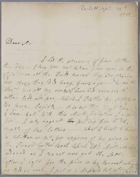 [ID:2063] From: Miss Anna Porterfield / To: Dr William Cullen (Professor Cullen) / Regarding: Miss Anna Porterfield (Patient) / 14 September 1781 / (Incoming)