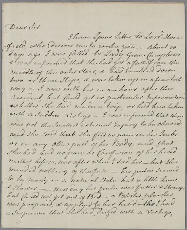 | Summary | Letter from James Swan, concerning the case of Lady Grace Campbell. |