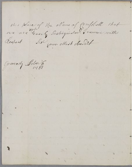 | Summary | Letter from Mrs Campbell of Greenock, describing her own case. She requests Cullen's reply be directed to a Mrs Tennent, 'their being so many people in this place of the Name of Campbell that we are not Easily distinguished'. |