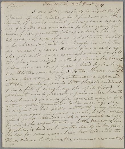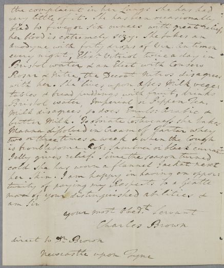 | Summary | Letter from Charles Brown concerning the case of Miss Furie, aged 25, 'who was a Patient of yours about four years ago'. |