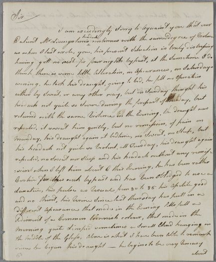 | Summary | Letter from John Andrew, concerning the case of Mr Livingstone. On page three is a pencil drawing. |