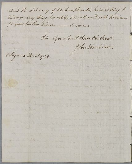 [ID:2109] From: Mr John Andrew / To: Dr William Cullen (Professor Cullen) / Regarding: Mr Livingstone (of Parkhall) (Patient) / 5 December 1781 / (Incoming)