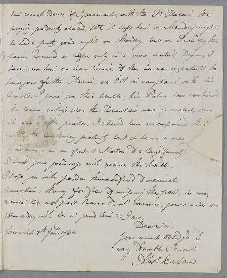 [ID:2127] From: Dr Alexander Bertram / To: Dr William Cullen (Professor Cullen) / Regarding: Mr (Patient) / 8 January 1782 / (Incoming)