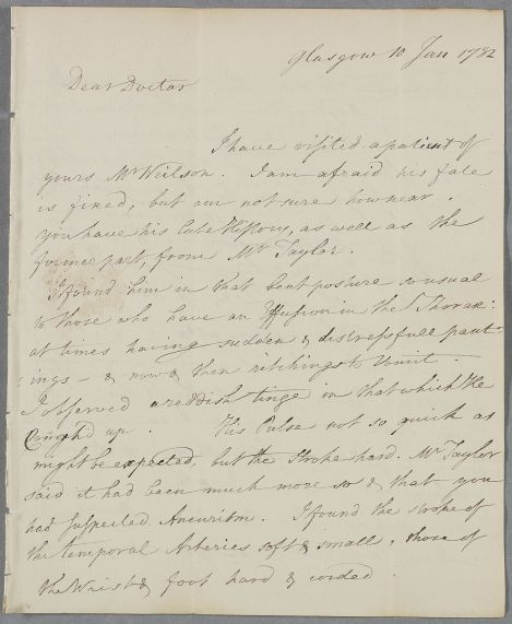The Consultation Letters of Dr William Cullen (1710-1790) at the Royal College of Physicians of Edinburgh
