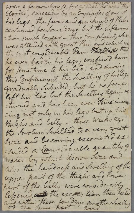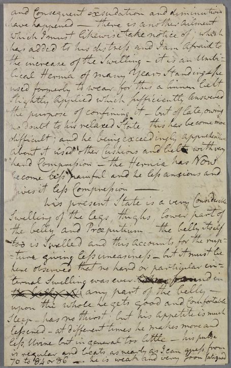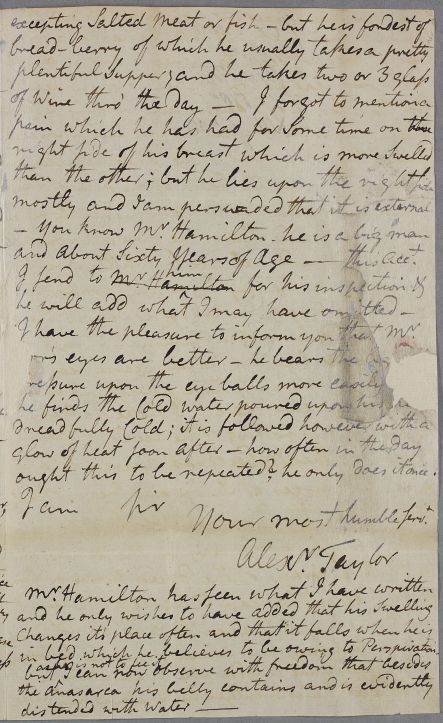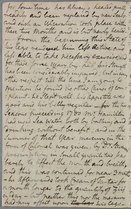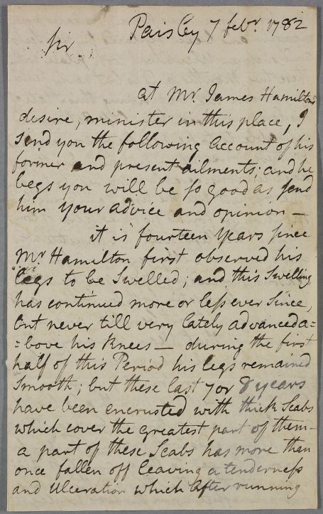 Case of the Revd. James Hamilton, minister in Paisley, who suffers from swollen and ulcerated legs. The case proves terminal and a post-mortem is performed by local surgeon Alexander ["Sanders"] Taylor. |