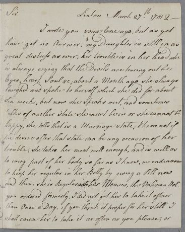 | Summary | Letter from Charles Hay, concerning the case of his daughter Betty. Addressed to 'Dr J Cullen' . Place of writing 'Linton' not connected as place because there are several and it is not clear in which one Hay lived; |