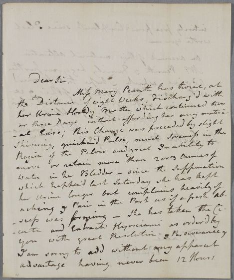 | Summary | Letter from William Ingham, concerning the case of Miss Mary Pearith, who has 'twice, at the Distance of eight weeks, discharg'd with her urine bloody matter'. |