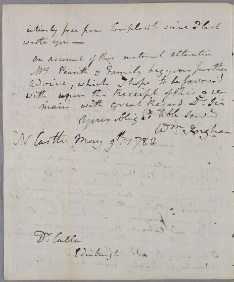[ID:2205] From: Mr William Ingham / To: Dr William Cullen (Professor Cullen) / Regarding: Miss Mary Peareth (Pearith, Peariths) (Patient) / 9 May 1782 / (Incoming)