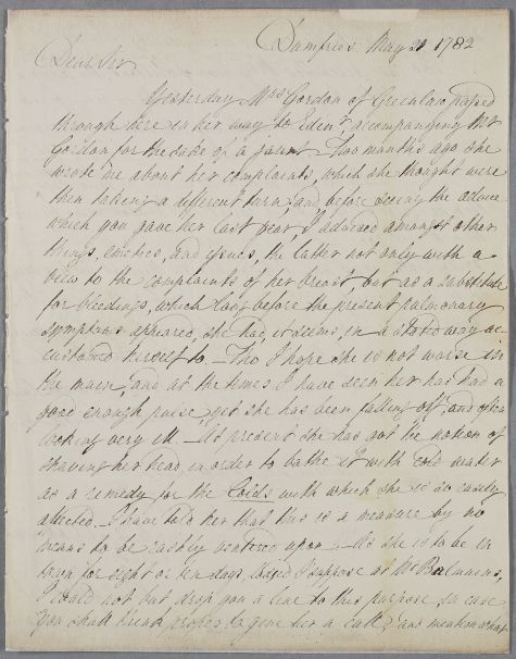 | Summary | Letter from John Gilchrist, concerning the cases of Mrs Gordon of Greenlaw, who 'passed through here in her way to Edin[bu]r[gh], accompanying Mr Gordon for the sake of a jaunt', and Mr Gibson of Kelton, whose case hers resembles. |