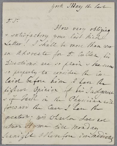 | Summary | Letter from Richard Wharton to Thomas Wharton, Commissioner Exchange, concerning the case of Mrs Wharton and asking for Cullen's opinion on her case. Date from header "May the last" as the 31 May. Mrs Wharton, from six years old, used to take Scotch Snuff 'till within these 2 Years'. |