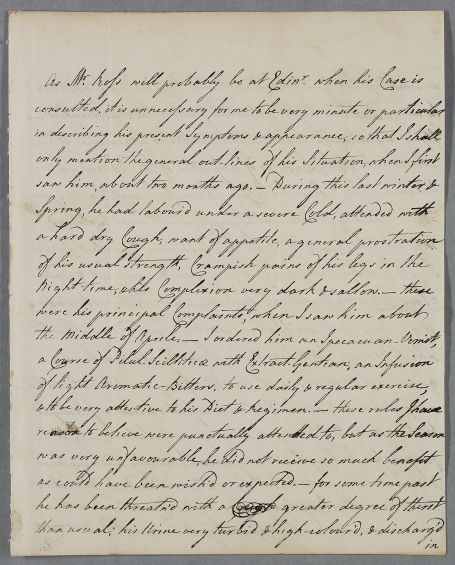 [ID:2236] From: Dr Thomas Livingston / To: Dr William Cullen (Professor Cullen) / Regarding: Mr James Ross (Patient) / 17 June 1782 / (Incoming)