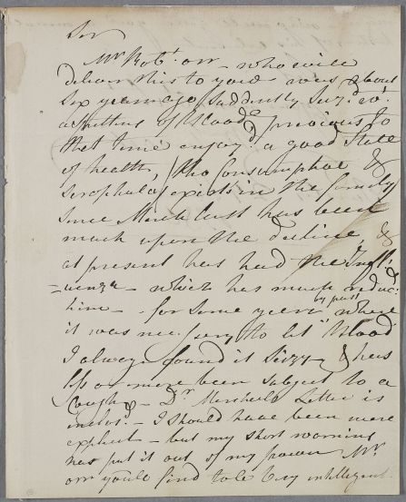 | Summary | Letter from William Stewart, Paisley, concerning the case of Robert Orr, who is delivering the letter by hand. It includes Doc ID 2244, from Dr Marshall. Stewart says that Mr Orr started to spit blood about 6 years ago. He is consumptive, from a scrophulous family, and has had influenza: 'Mr. Orr you'll find to be very intelligent man – who will give you a minute history of his ailment'. |