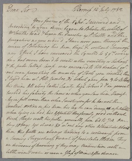[ID:2251] From: Mr John Short / To: Dr William Cullen (Professor Cullen) / Regarding: Mr Thomas Smith (Patient) / 14 July 1782 / (Incoming)