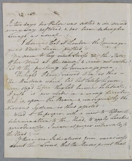 Case of Miss Jeanie Campbell of Clathick whose symptoms, including chilblains and suppressed menses, suggest to Cullen that she has 'stagnant' blood. |