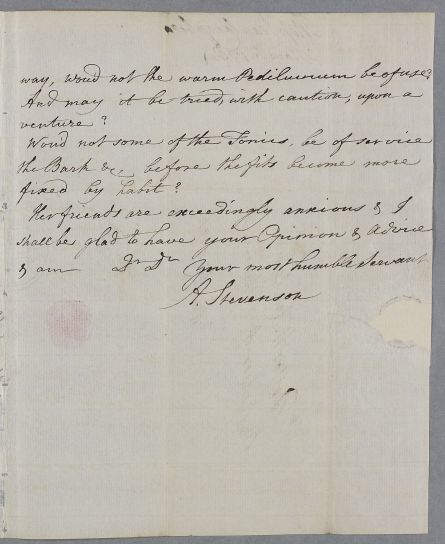 | Summary | Letter from A. Stevenson, Glasgow, concerning the case of Miss Jean Campbell. |