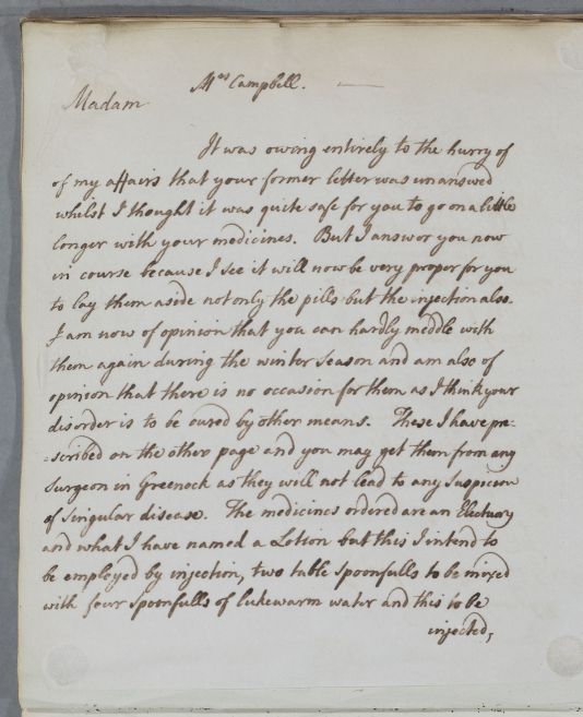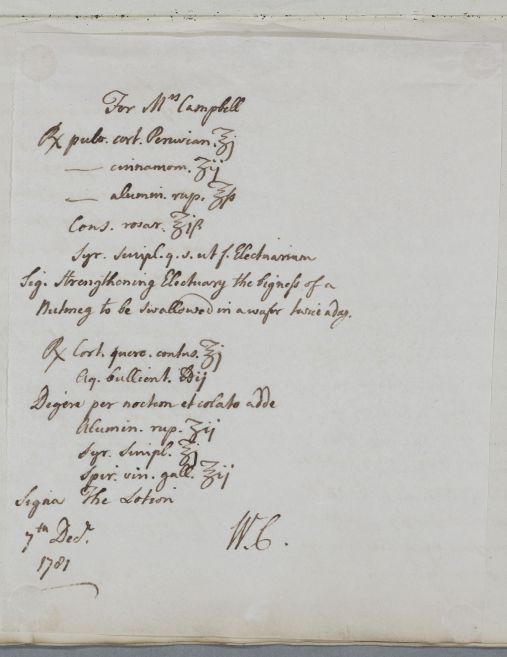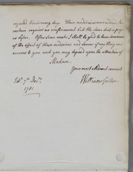 [ID:228] From: Dr William Cullen (Professor Cullen) / To: Mrs M. Campbell (of Greenock) / Regarding: Mrs M. Campbell (of Greenock) (Patient) / 7 December 1781 / (Outgoing)
