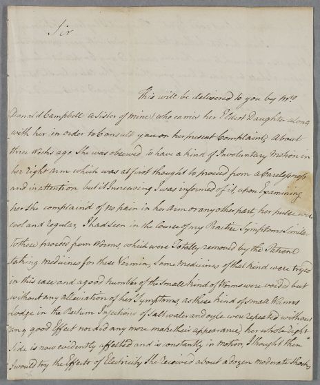Case of Miss Campbell of Saddle diagnosed with chorea and worms. |