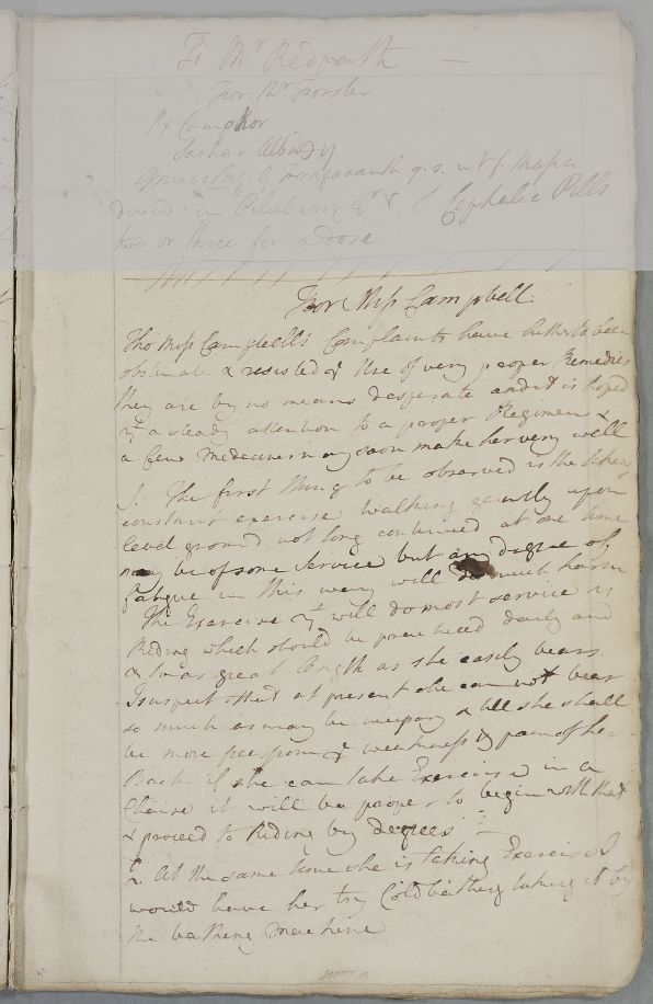 | Summary | Reply, 'For Miss Campbell' recommending a 'steady regimen'. Date inferred from place in case-book. |