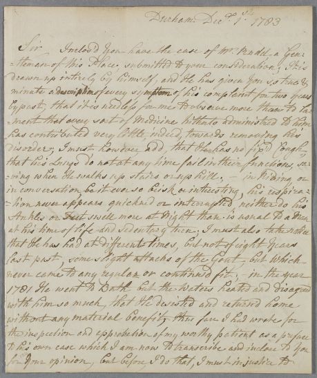 [ID:2376] From: Dr John Drake Bainbridge / To: Dr William Cullen (Professor Cullen) / Regarding: Mr Rudd (Patient) / 1 December 1783 / (Incoming)