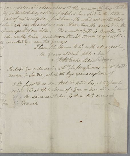 | Summary | Letter from John Drake Bainbridge, concerning the case of Mr Rudd. |