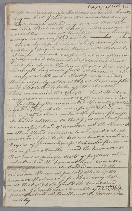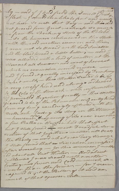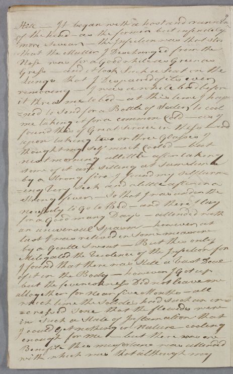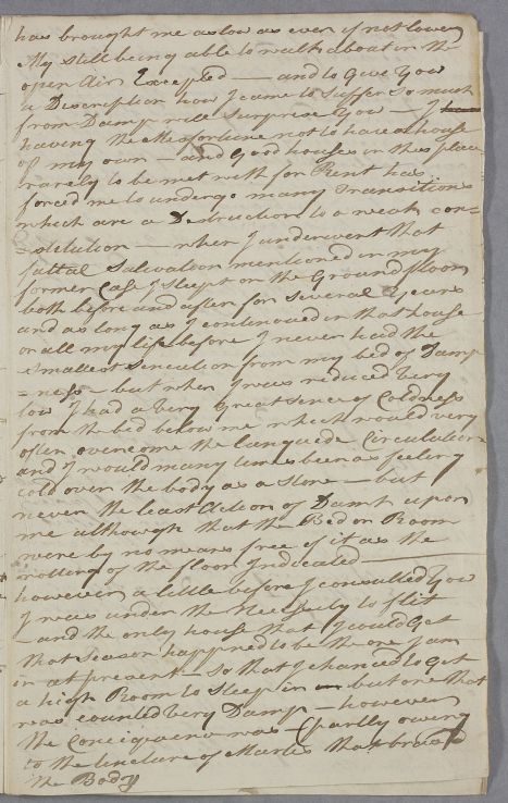 Case of David McLean who sends a very long account of his various 'nervous' symptoms following an injury to his foot; later, in 1784, he contacts Cullen again over the ill-effects of living in a damp house. |