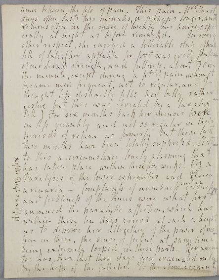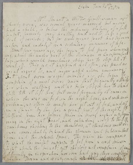 Case of Mrs Stuart who suffers from severe chest pains, like angina, but which Cullen considers a 'spasmodic affection' loacted in her stomach. |