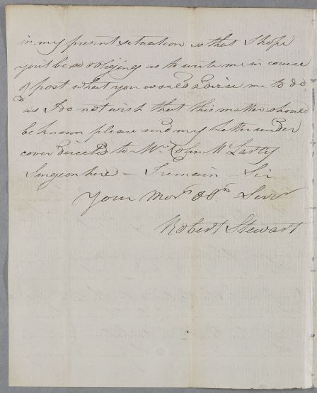 | Summary | Letter from Robert Stewart, concerning his own case and giving more details on its nature. |