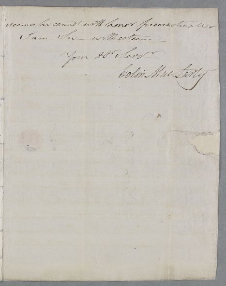 | Summary | Letter from Colin MacLarty, concerning the case of Mr Stewart, who 'desires me to inform you that he has strictly adhered by the rules prescribed'. |